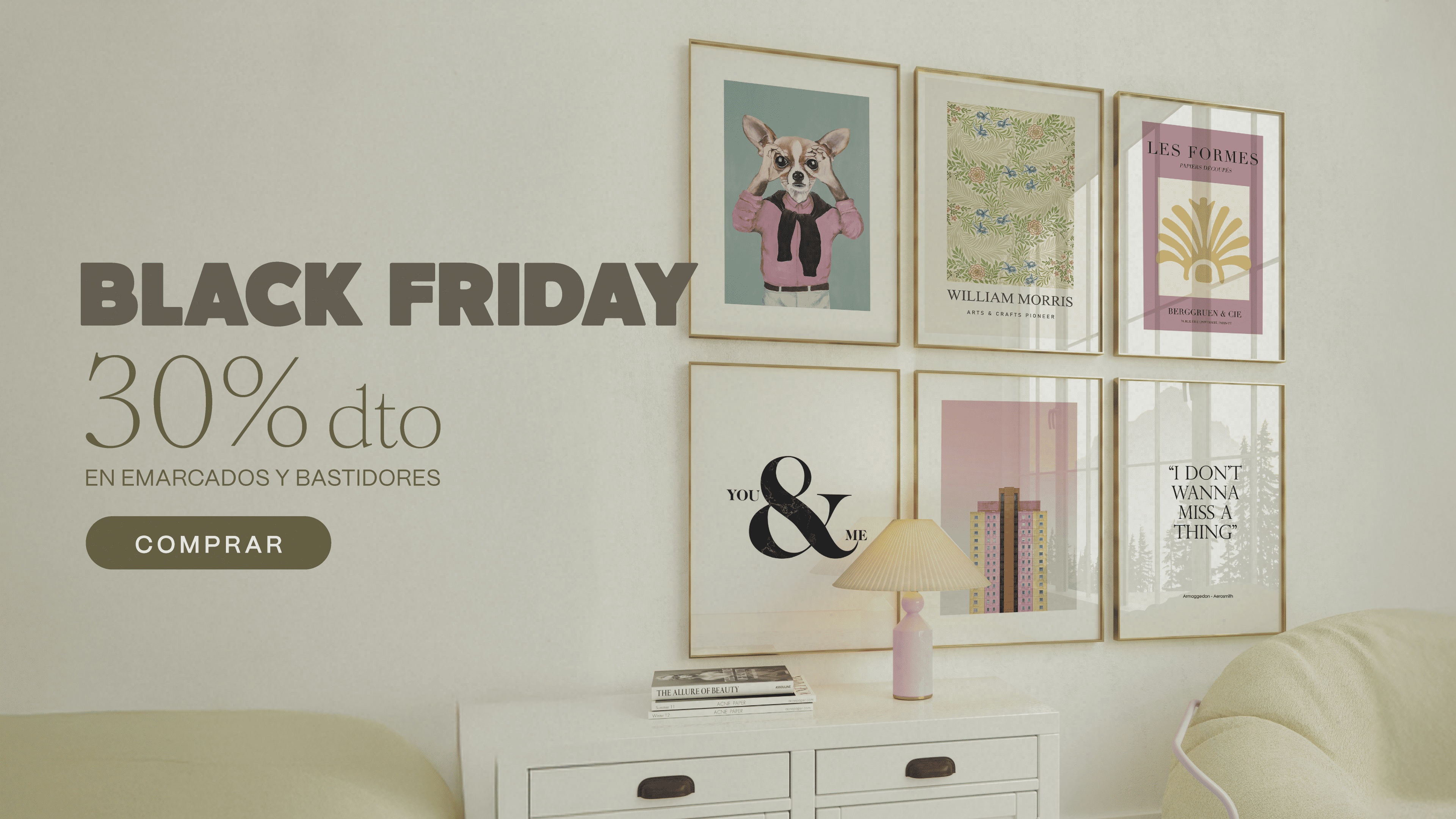 Celebra el Black Friday de Drimdeco con descuentos exclusivos para renovar tus paredes al mejor precio. Marcos y bastidores con rebajas irresistibles. Es el momento ideal para transformar cualquier estancia con diseños actuales y de alta calidad. Aprovecha las ofertas antes de que se agoten.