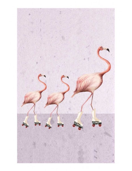 Set of flamingos with roller skates