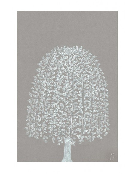 White line tree on gray background. Reproduction of Claudia Seghers design. Other models available