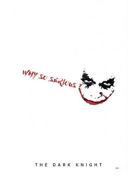 Reproduction of the work of the artist Vincent Hede. Decorative painting of the Batman movie with the Joker's smile, on a white background and a red touch.