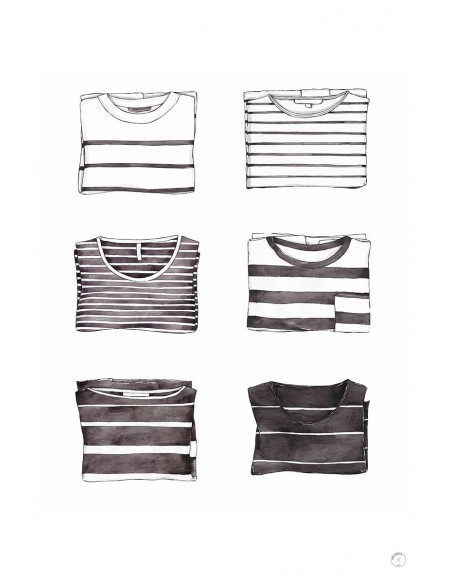 Set of six folded black striped t-shirts. Composition designed by Valenria Rienzi. Combine this painting with others to form a collage