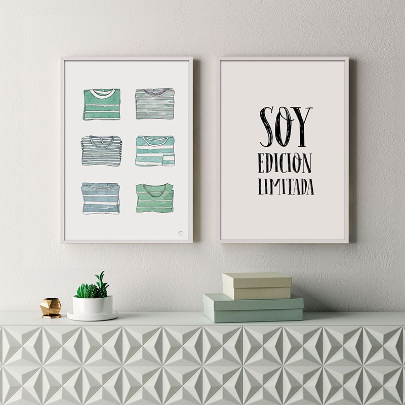 Printed design on quality paper with ecological and environmental inks. Framed with a natural wooden architect of Ayous. It carries glass. Artisically made of Clock S.L. Llimpy the crystal passing a slightly humid cloth. Silver molding