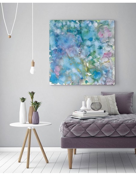 Floral abstract in turquoise tone, reproduction of the original work by Marta Castet Belloq.