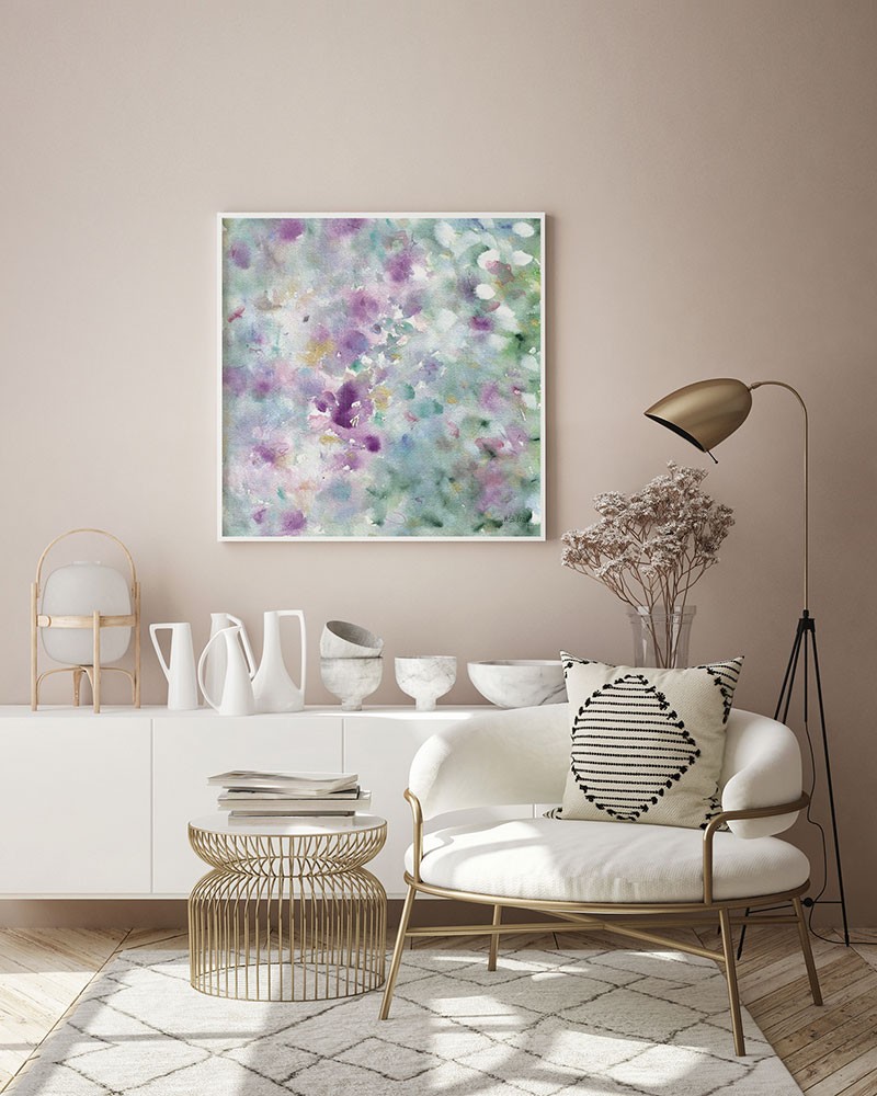 Campo Lilas painting by Marta Castet Bellocq. An abstract flral to brighten up any corner