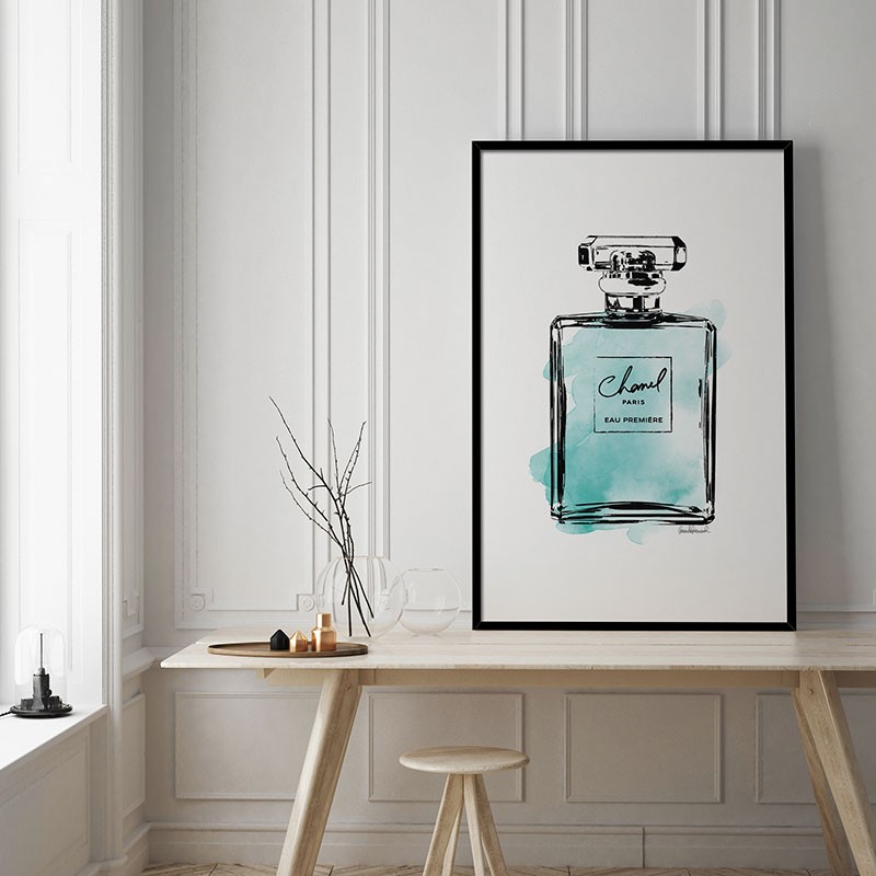 Drawing of a Chanel perfume bottle. Design by Amanda Greenwood.