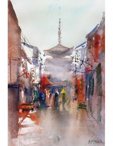 Landscape of a street in China, reproduction of the original work by Bruno Vázquez