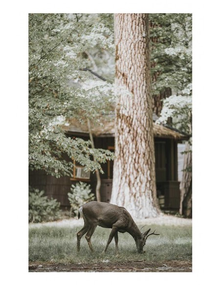Green forest landscape with deer
