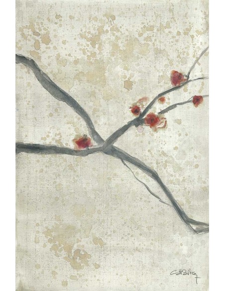 Tree branch with five red flowers. Reproduction of Marta Castet Bellocq