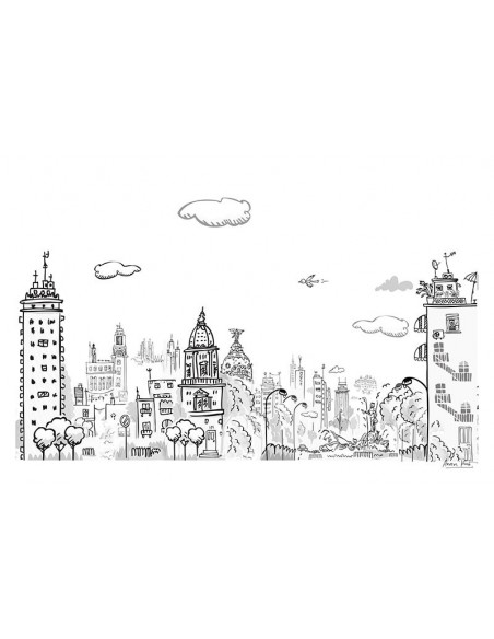 Black and white urban silhouette made by the artist Aurora Rumí.