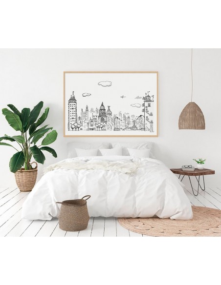 Printed design on quality paper with ecological and environmental inks. Framed with a natural wooden architect of Ayous. It carries glass. Artisically made of Clock S.L. Llimpy the crystal passing a slightly humid cloth. Silver molding