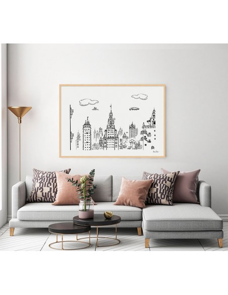Printed design on quality paper with ecological and environmental inks. Framed with a natural wooden architect of Ayous. It carries glass. Artisically made of Clock S.L. Llimpy the crystal passing a slightly humid cloth. Silver molding