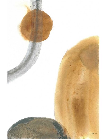 Abstract painting in mustard and gray tone reproduction of the work of Marta Castet Bellocq. Title "Design"