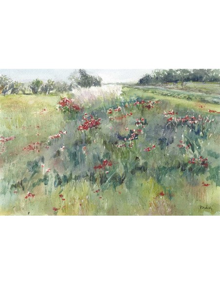 Meadow landscape dotted with little flowers Reproduction of the Work of Nacha Cassinello