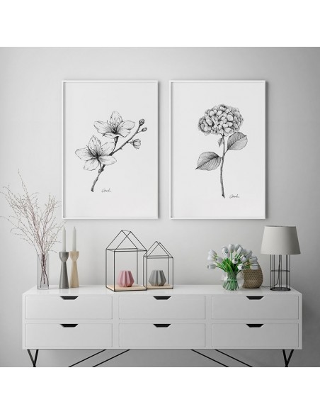 Cherry Blossom painted in black and white designed by Marta Gonzalez