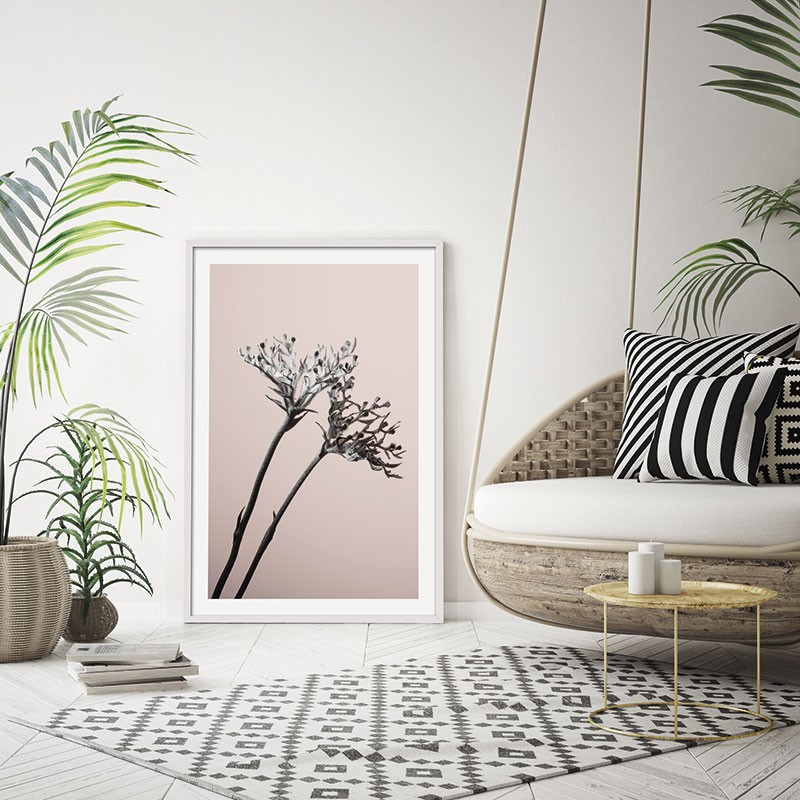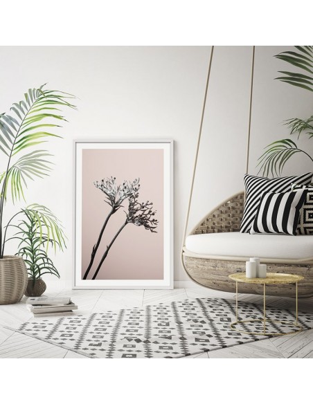 A delicate flower on a pink background. Add color as well as minimalism with this nature-themed photograph.