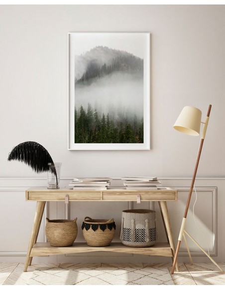 A painting of a forest emerging from the mist. Choose the size and finish that you like best.