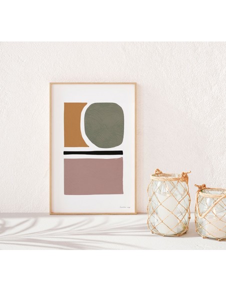 A set of geometric shapes in natural tones. Make your composition unique with the different models of the Abstract Collection. A reproduction of the work of Lucía Cañedo.