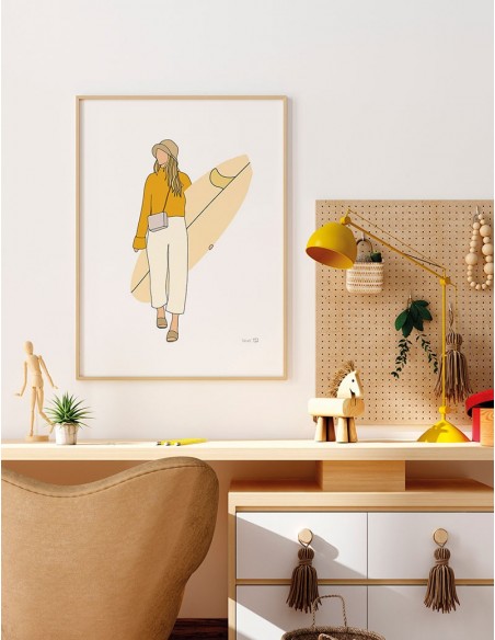 This girl with her surfboard conveys serenity while she gives a refreshing air to your home. A reproduction of the work of Matthew Wigglesworth.
