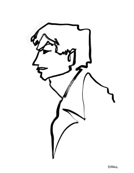 Line portrait of a man in profile. Reproduction of Bruno Vázquez's design.