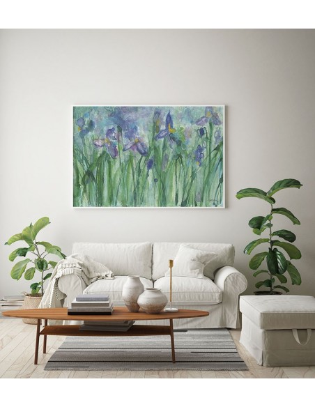 Iris, in shades of green and violet. For flower lovers. Reproduction of the work of Marta Castet Bellocq.
