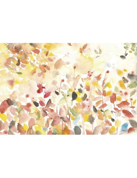 Autumn Jadin painting, an abstract of autumn leaves in the orange and ocher tones of autumn. Artist: Marta Castet Bellocq
