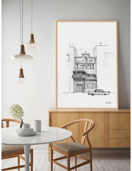 Printed design on quality paper with ecological and environmental inks. Framed with a natural wooden architect of Ayous. It carries glass. Artisically made of Clock S.L. Llimpy the crystal passing a slightly humid cloth. Silver molding