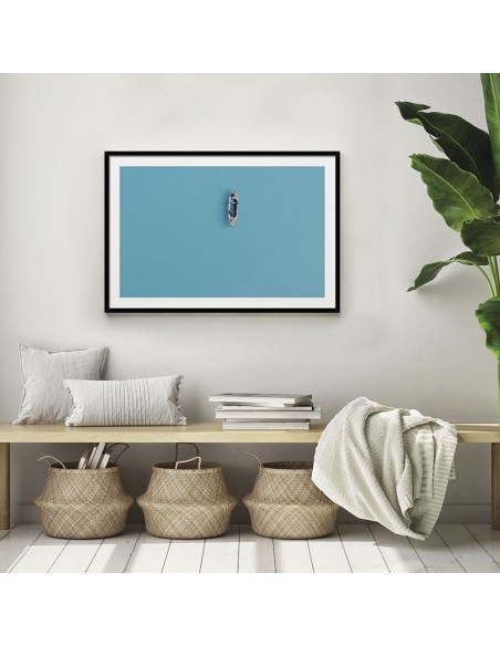 A lonely little boat in the middle of the ocean. Choose the size and finish that you like best.