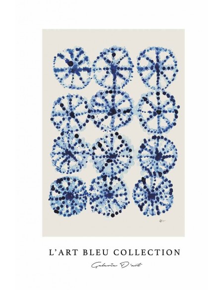 Abstract design with blue motifs forming a repetition. Design by Marta Castet Bellocq