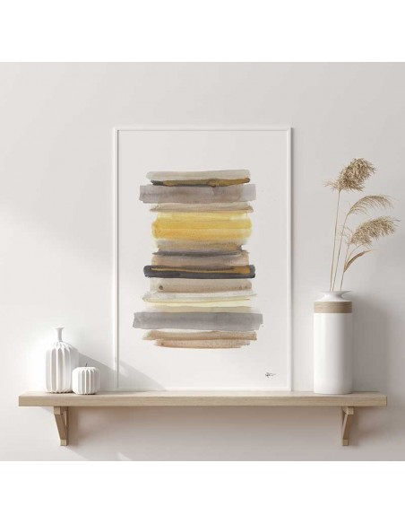 Cuadro de la colección de Abstractos de Drimdeco. Diseño de líneas horizontales en varios tonos ocres. Reproducción del diseño original de la artista Marta Castet Bellocq.