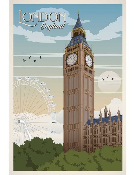 London sign with the Clock Tower in the foreground. A design made by Travel Studio. Combine it with other European cities.