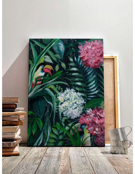 Leafy floral composition in tropical style. Original reproduction of Luisa Romero