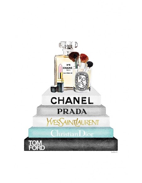 Fashion book illustration with perfume and makeup. Design by Amanda Greenwood.