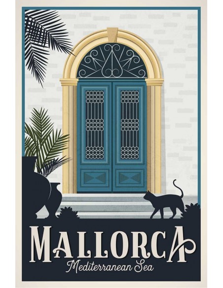 Door sign with a semicircular arch, ornate, reminiscent of the Balearic Islands. A decorative painting designed by Travel Studio