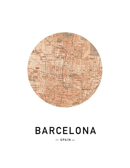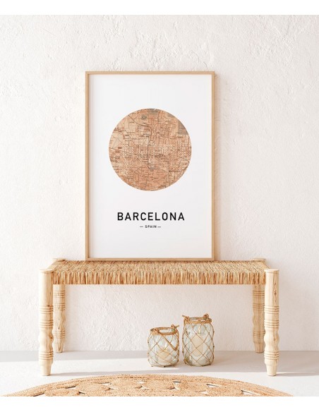 Barcelona map in beige tone. A painting for lovers of big cities.
