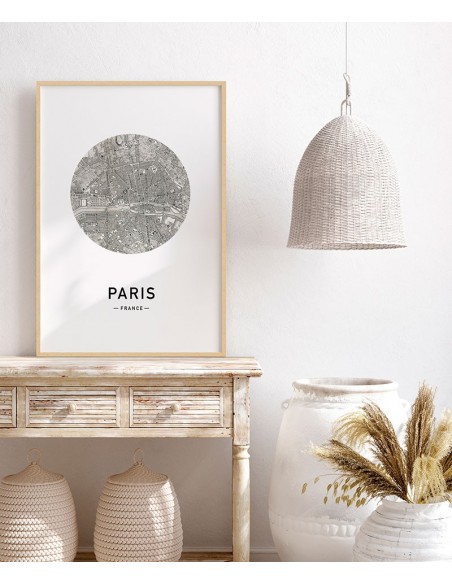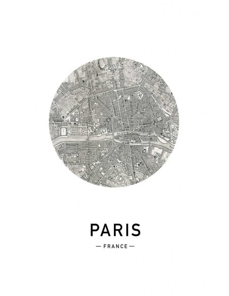 Circular map of the city of Paris. Other cities available to form a set.