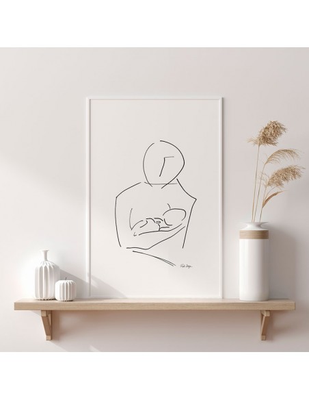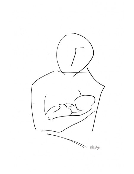 Linear illustration of woman with baby. Reproduction of Ruth Design's design.