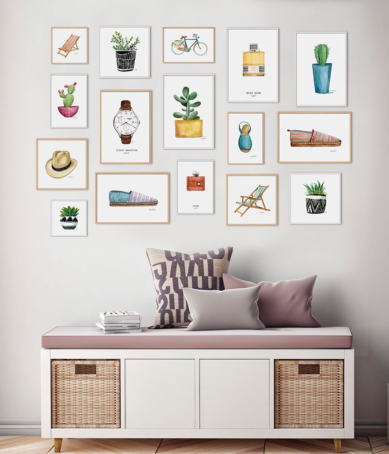 Printed design on quality paper with ecological and environmental inks. Framed with a natural wooden architect of Ayous. It carries glass. Artisically made of Clock S.L. Llimpy the crystal passing a slightly humid cloth. Silver molding