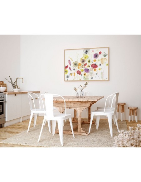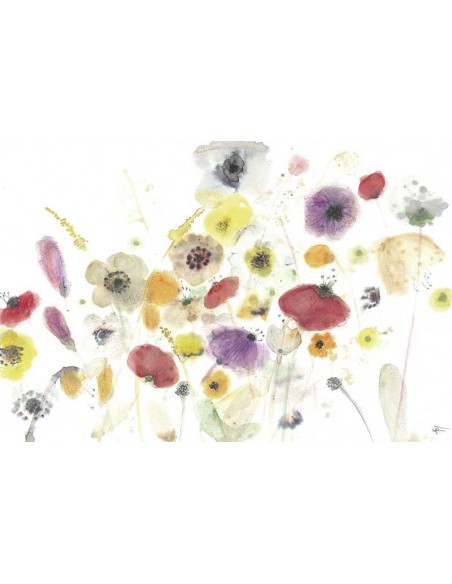 Thousand Flowers, an idyllic and full-color floral painting with a variety of cheerful flowers. Reproduction of the original by Marta Castet Bellocq