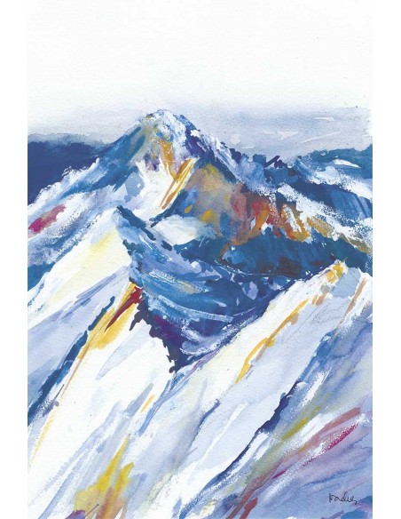 Mountain landscape in blue, reproduction of the original work by Nacha Cassinello