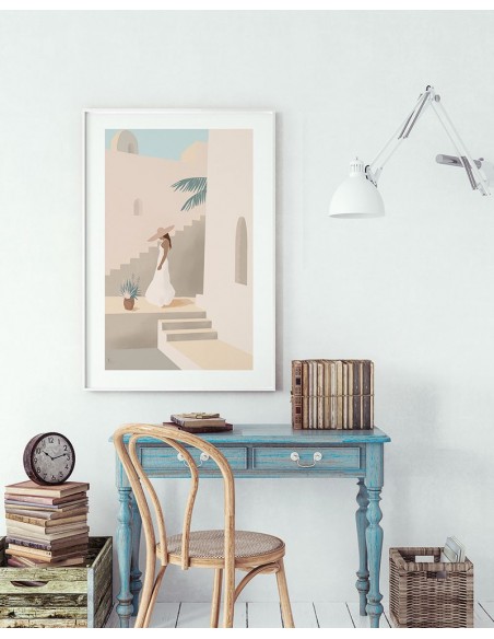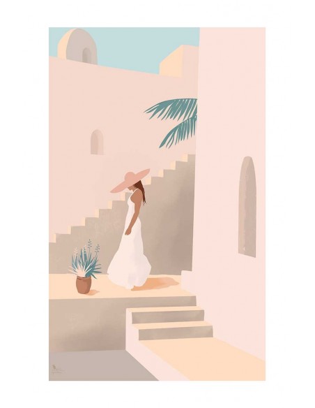 An illustration with the silhouette of a girl walking through Morocco on a dream trip. We recommend you make a composition of two or more paintings with the original designs of the artist Christine Kapa.
