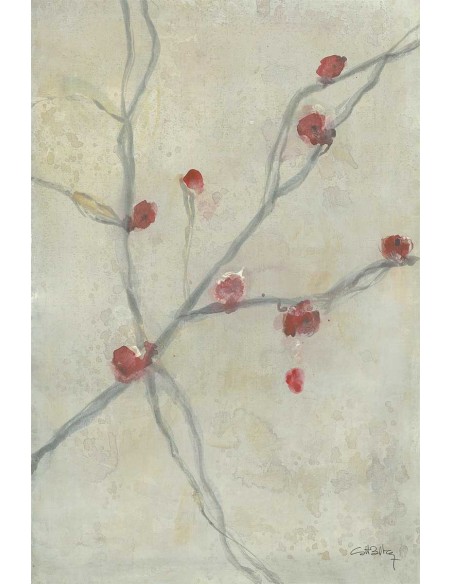 Tree branch with nine red flowers. Reproduction of Marta Castet Bellocq