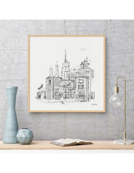 Printed design on quality paper with ecological and environmental inks. Framed with a natural wooden architect of Ayous. It carries glass. Artisically made of Clock S.L. Llimpy the crystal passing a slightly humid cloth. Silver molding