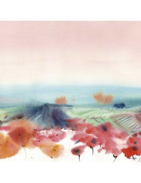 Idyllic country landscape in a coral tone, reproduction of the work of Ruth Design