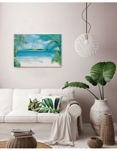 Paradise beach landscape. Reproduction of the work of Luisa Romero