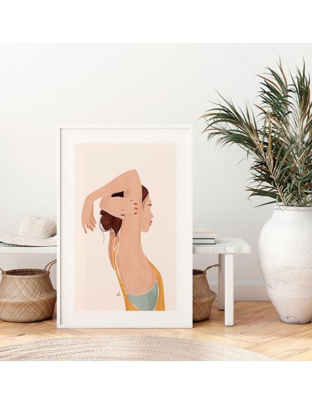 Feel identified with this girl by making a gesture with her arms. Make a combination with several paintings from the Illustrations Collection to give a different touch to your spaces. An original design by artist Chloé Lamothe.