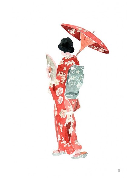 Wall art Nieve en Momoyogusa CU374 From €7.67 €10.95 Peasant with a big hat under the snow. japanese style View