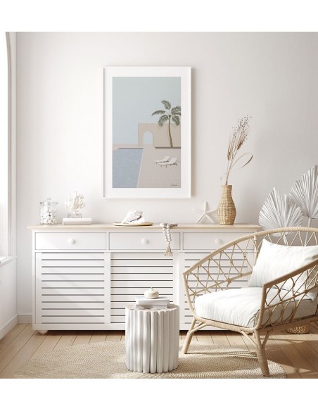 Relax looking at this illustration of a tropical swimming pool. Reproduction of the work of Marta Gonzalez.