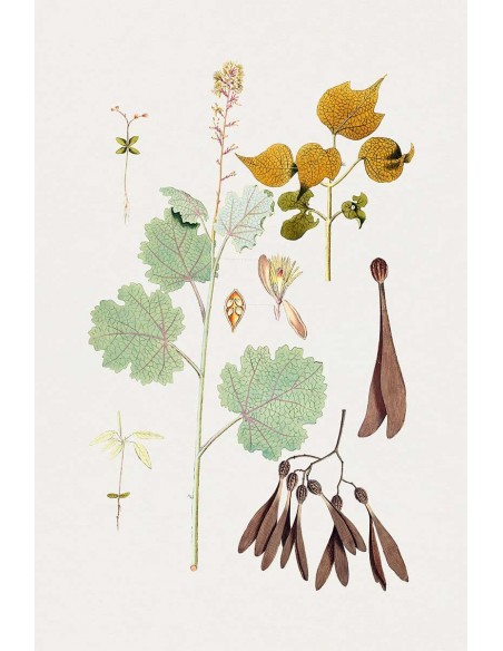 Vintage-style flowers and plants in various shades