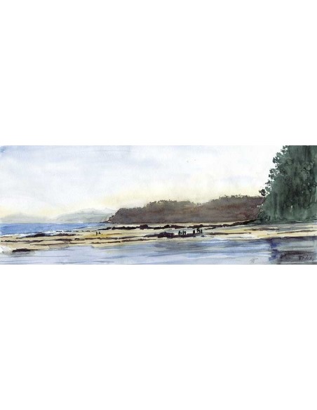 Galician coast landscape in various tones, reproduction of the work of Nacha Cassinello