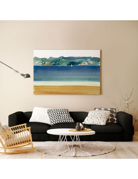 Abstract view of the blue sea and the sand in the foreground, reproduction of Nacha Cassinello.